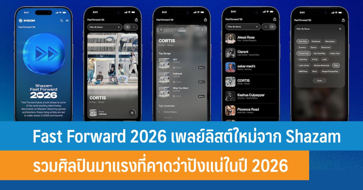 Fast Forward 2026 เพลย์ลิสต์ใหม่จาก Shazam รวบรวมศิลปินที่กำลังมาแร โดยใช้ข้อมูลจริงจากการระบุเพลงผ่านแอปของผู้ใช้งานทั่วโลก