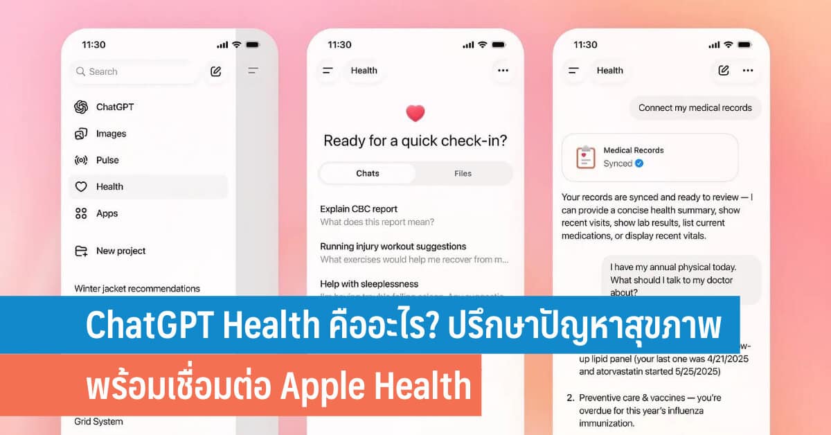 ChatGPT Health คืออะไร OpenAI เปิดตัวบริการแชทใหม่ที่เปิดแยกจากแชททั่วไป ชูจุดเด่นด้านความเป็นส่วนตัว ความปลอดภัยของข้อมูล คุยเรื่่องสุขภาพ
