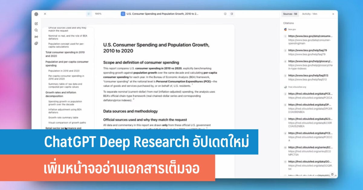 ChatGPT Deep Research อัปเดตใหม่ มาพร้อมตัวอ่านเอกสารรายงานเต็มรูปแบบ และการควบคุมที่แม่นยำยิ่งขึ้น ยกระดับการทำงานเชิงลึกให้มืออาชีพมากขึ้น