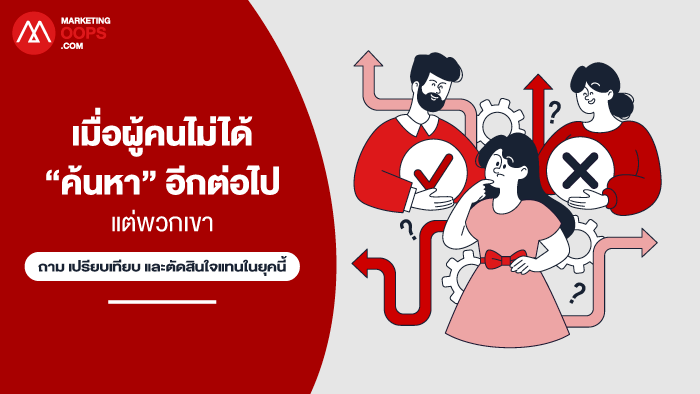 ผู้คนไม่ได้พิมพ์คำค้นหาสั้น ๆ อีกต่อไป แต่เริ่มต้นด้วยการตั้งคำถาม การขอความคิดเห็น อ่านสรุปจาก AI ถามเพื่อนในกลุ่มไลน์ หรือดูบทสนทนาใน Community  ก่อนจะค่อย ๆ ตัดสินใจ